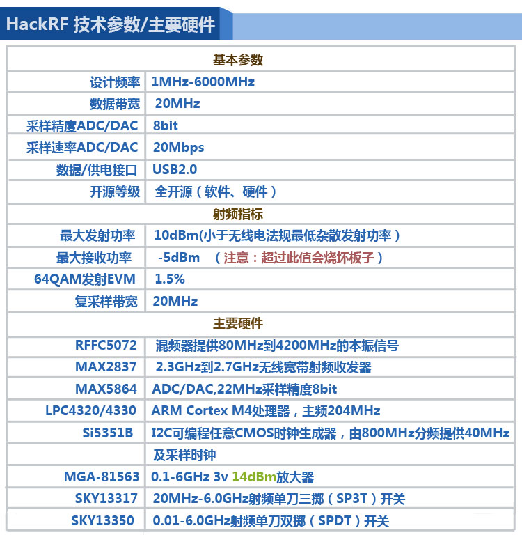 HackRF One 是一款全開源,寬頻(1MHZ-6GHz)支持度廣泛(Win、Linux、OSX、Android等系統(tǒng))的軟件無線電通信開發(fā)平臺。是客戶Michael Ossmann為我們提供了一個便攜,寬頻率的SDR硬件平臺,這使我們不再望而興嘆的高端SDR平臺。各種功能,如工作頻段、濾波、混頻信號放大、調(diào)制解調(diào)類型、數(shù)據(jù)格式、加密模式、通信協(xié)議等,都可以用軟件來完成。