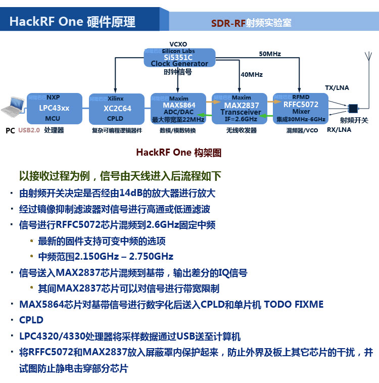 HackRF One硬件主要由以下幾部分組成
